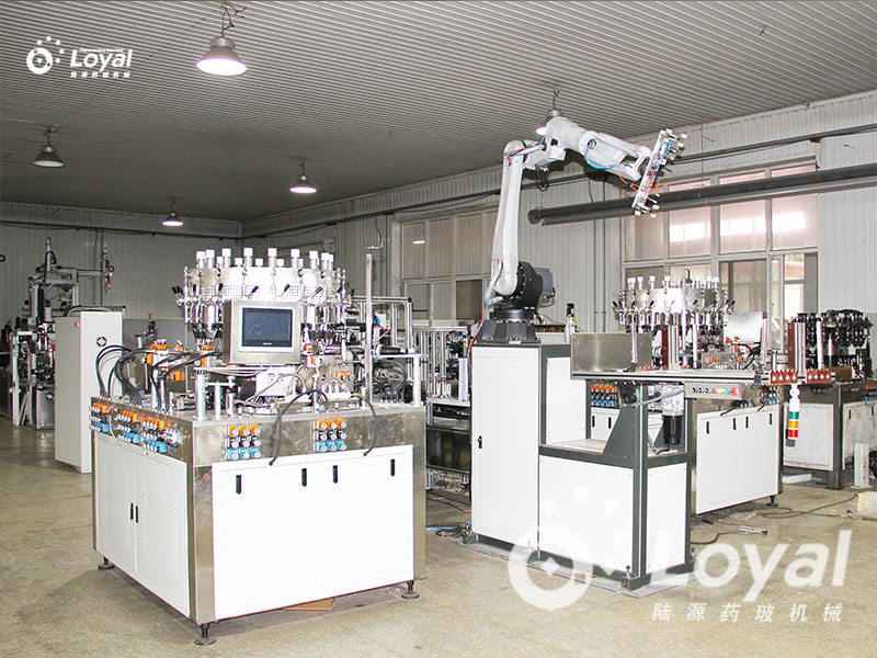 西林瓶生產(chǎn)線包括:自動上管、自動成型、經(jīng)機械手轉(zhuǎn)換至前端檢測線(也叫生產(chǎn)管控)、檢測線檢測的項目:1、瓶口內(nèi)外徑 2、瓶身長短 3、瓶身外徑 4、瓶口邊厚 5、瓶底內(nèi)凹尺寸檢測;經(jīng)檢測后的合格品再用機械手夾盤轉(zhuǎn)換至退火爐網(wǎng)帶上,經(jīng)高溫減除應(yīng)力后再降溫,通過氣動吸盤將回火后的小瓶轉(zhuǎn)換至后端檢測線,后端檢測(也是重檢也叫終檢),經(jīng)后端拍照檢測項目
